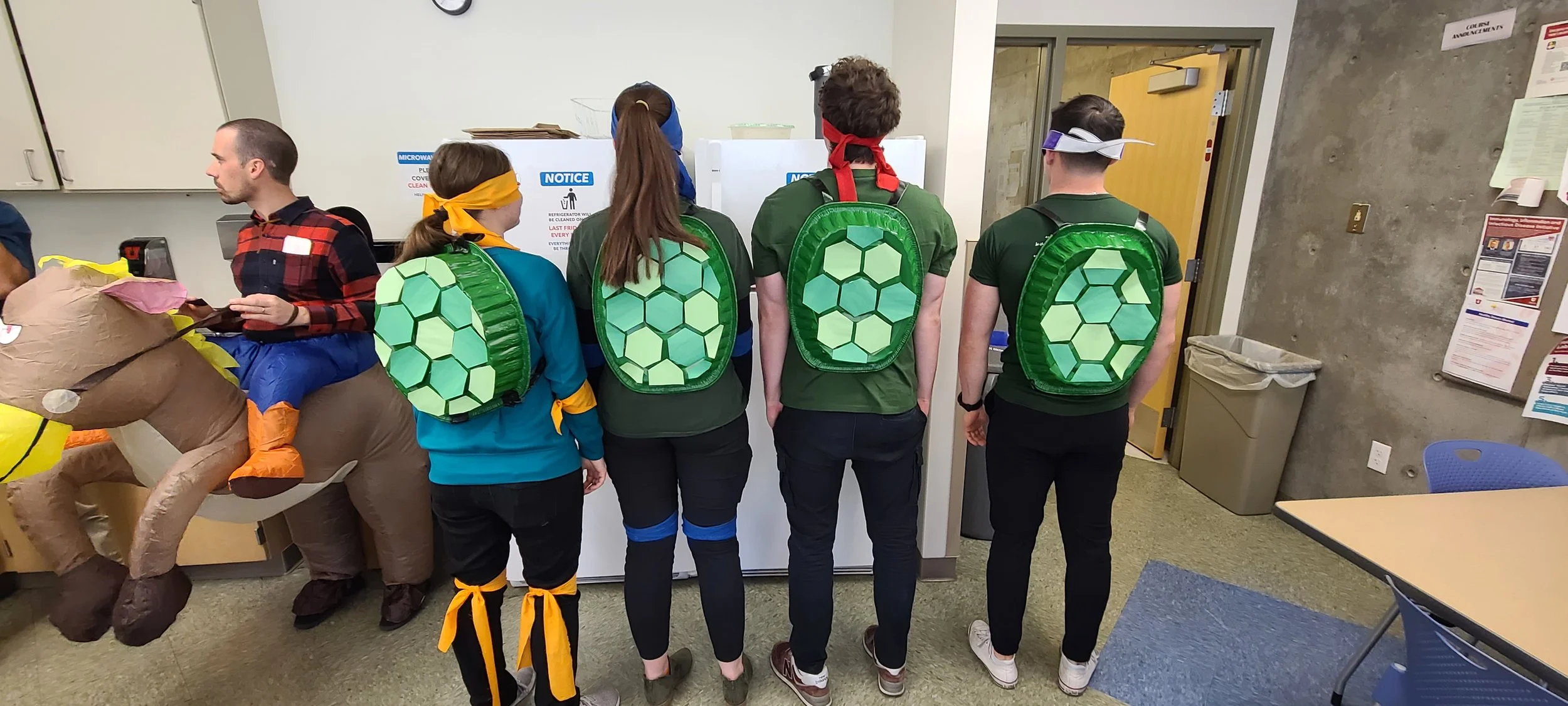 For Halloween, our lab members decided to dress as ninja turtles. Kapow!